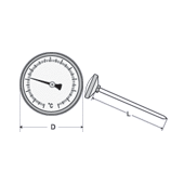 | Тип | Артикул | D, мм | Длина штуцера L, мм | Диапазон, С° | Кл. точн. | Цена деления,С° | К-во, шт.в упак. |