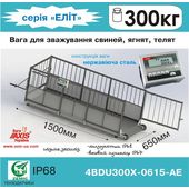 4BDU600Х-0820-Б Бюджет - цифровые весы для свиней производства АКСИС Украина состоят из приемной платформы и специальных пандусов с рифленой поверхностью, ограждения зашитого перфорированным листом с двумя входами высотой 650мм, 2 (двух) колес и 2 (двух) ручек для перевозки, четырех тензометрических датчиков ІР67 (Keli), коммутаторной коробки и весопроцессора AXIS-01 (высота цифр 18мм, LED, IP54) с автономным питанием (> 20часов работы).