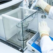 Wireless communication between balance terminal and a weighing unit make it possible to comfortably operate 4Y series balances in laminar air flow cabinets and fume cupboards.